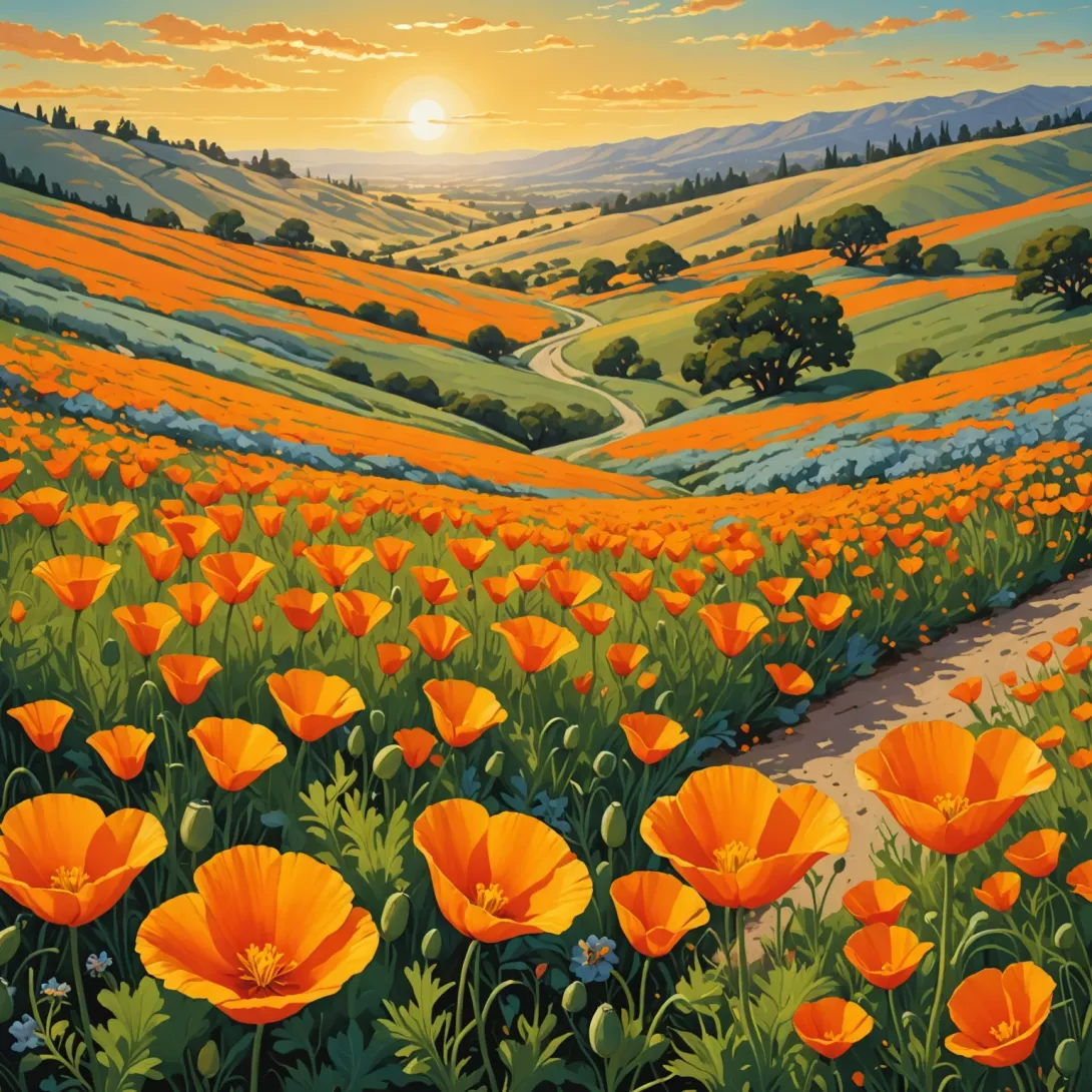 Калифорнийский мак — это однолетнее растение с ярко-оранжевыми цветами, которые покрывают поля в теплое время года, создавая впечатляющий красочный ковер. Этот цветок известен своей способностью быстро расти и придавать живописность ландшафтам Калифорнии и других регионов.