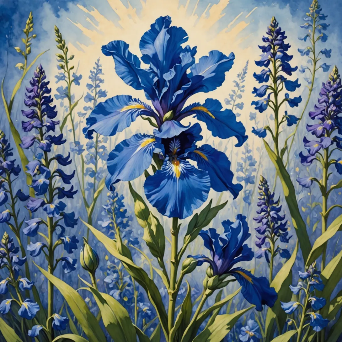 - Синие цветы встречаются у таких видов, как дельфиниум, голубой ирис и рябчик.